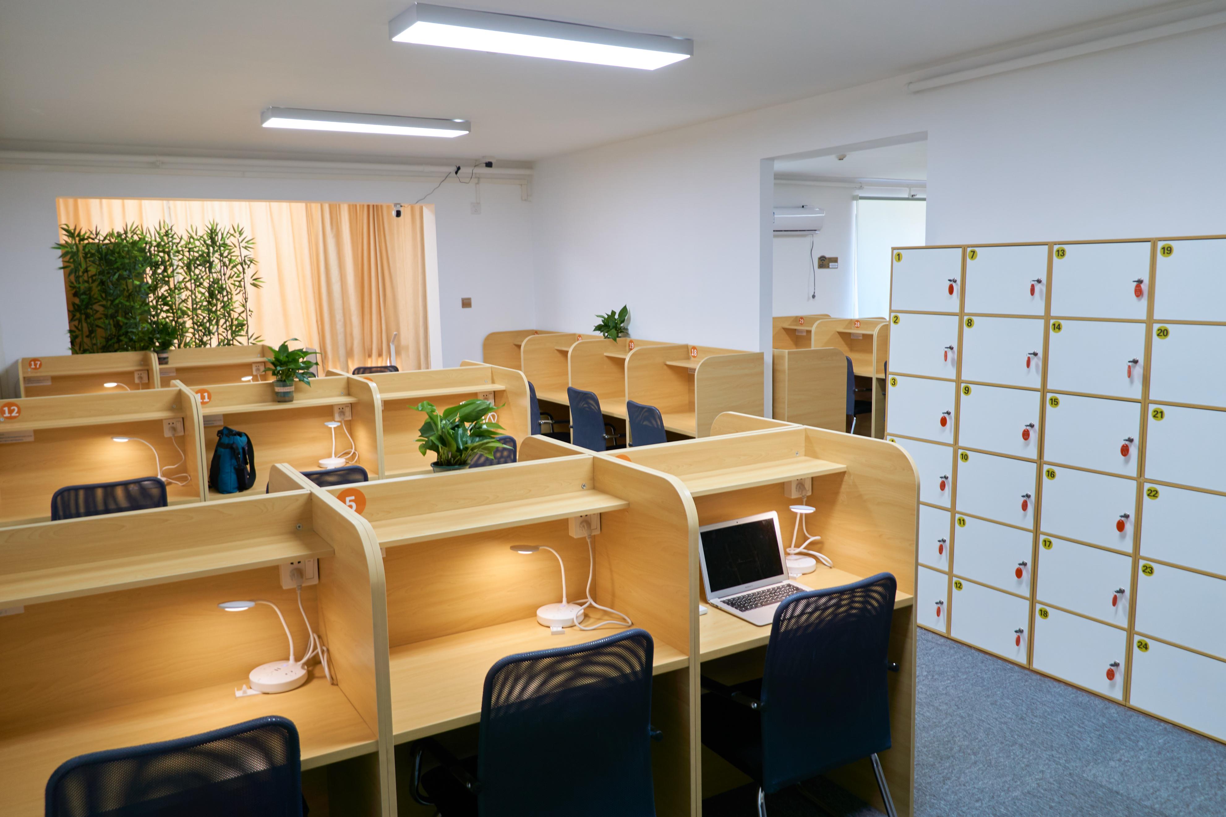 想象一下, 窗外是熟悉的街景,室内是埋头苦读的同路人,看到别人干劲满满,驱使自己迅速回归到学习状态中。而且,共享自习室现在价格亲民,按小时计费,也能买月卡包月,对预算有限的打工人来说,还是很不错的。
