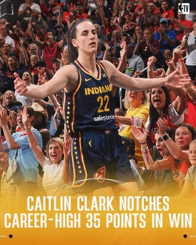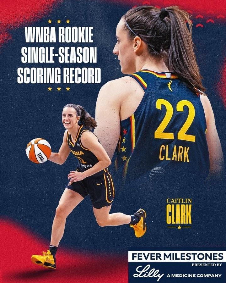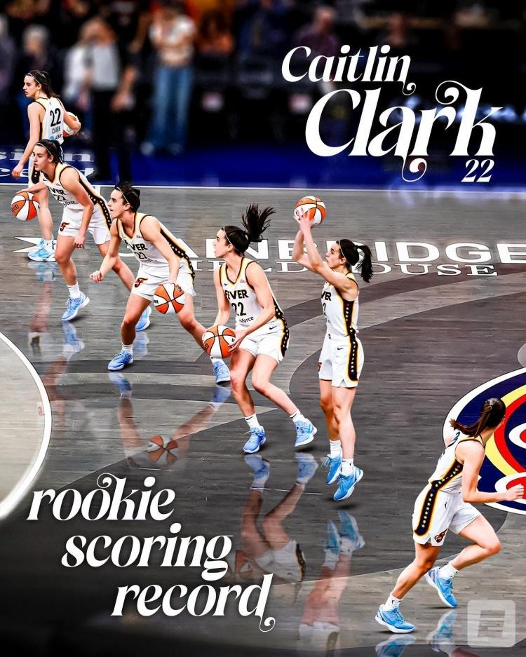 加上本场比赛的35分,克拉克本赛季已经轰下761分,打破西蒙妮-奥古斯图斯在18年前所创造的WNBA球员新秀赛季得分纪录(744分),占据第一的位置。此外,克拉克之前还刷新了WNBA单赛季助攻数纪录,这可不是新秀球员,而是所有球员。本赛季克拉克场均可以轰下19.5分8.4助攻5.7篮板,最佳新秀已经没有悬念,要是球队战绩再好一些,甚至有机会冲击MVP了。