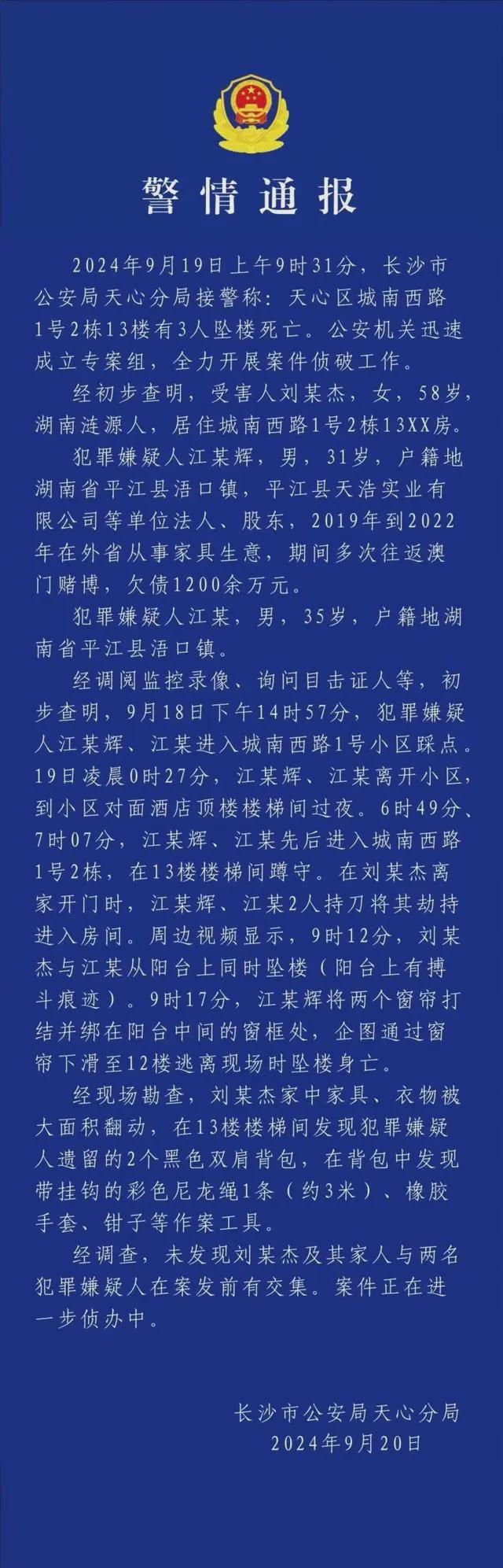 9月20日晚间,湖南长沙市公安局天心分局再次发布警情通报: