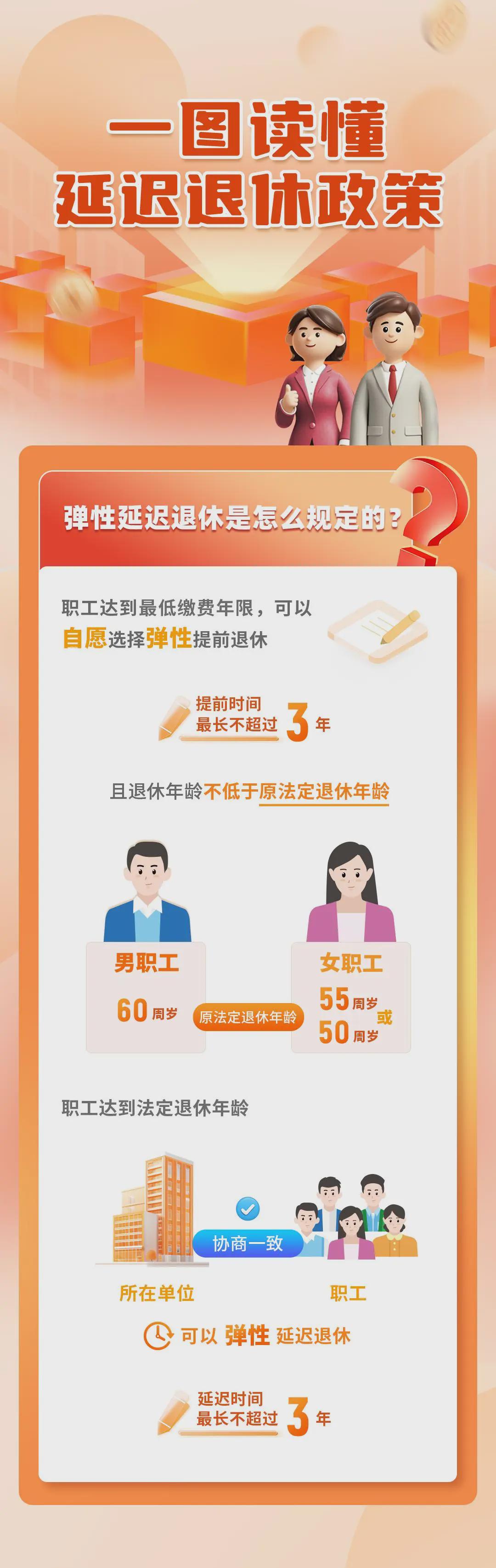 要点二:可弹性提前或者延后退休,最长不超过3年