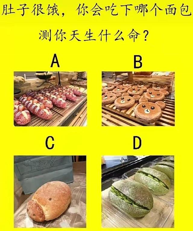 肚子很饿,你会吃下哪个面包,测你天生什么命?