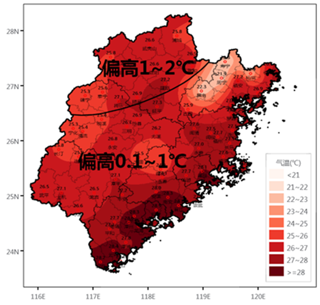 福建省2024年9月平均气温趋势预测