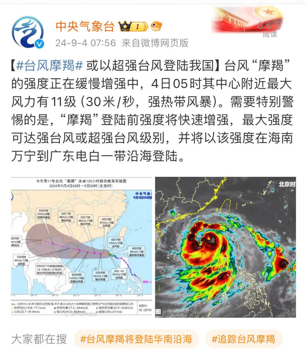 今天上午8时已加强为台风级