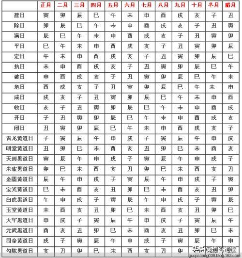 十二建星与大黄道对照表(以正月建寅起第一个寅日建星)