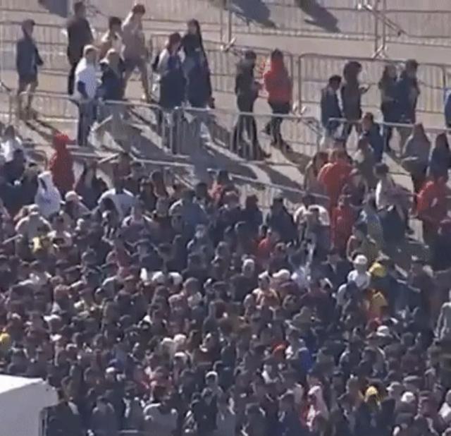 到了这个时候,场面已经完全不受控制了,可Travis Scott却仿佛“唱嗨”了一样,丝毫没有要停下来,阻止粉丝的意思。