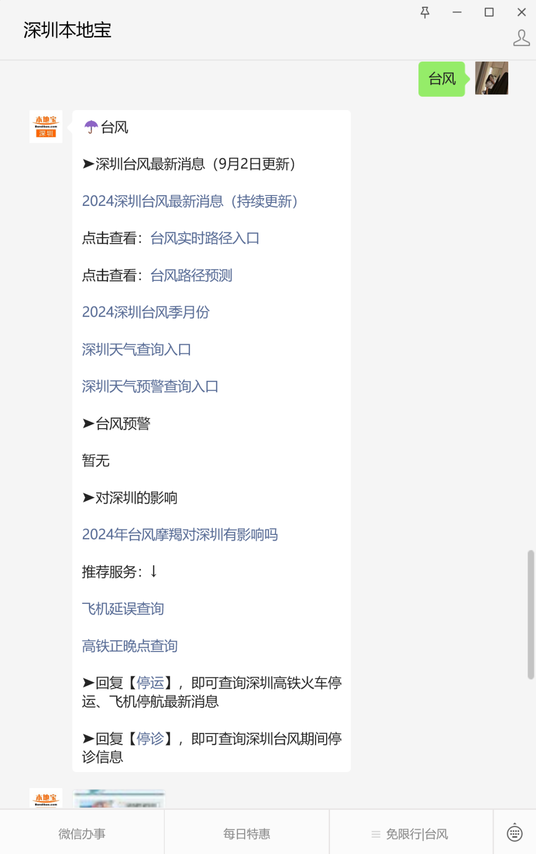 也可以扫描下方二维码,跳转【深圳本地宝】公众号,回复【台风】关键词,即可获取: