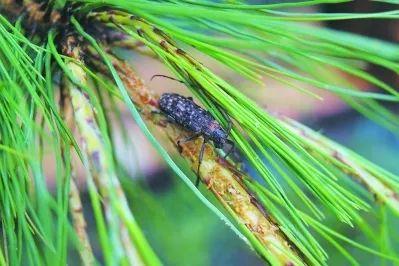 二是在松褐天牛羽化盛期(时间为5-7月),利用1%噻虫琳微胶囊粉剂防治松褐天牛成虫。