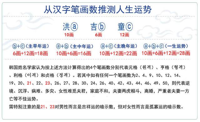 大家可能觉得很奇怪“洪”字明明只有9画,怎么算出了10画?其实这是姓名学笔画计算的特殊规定: