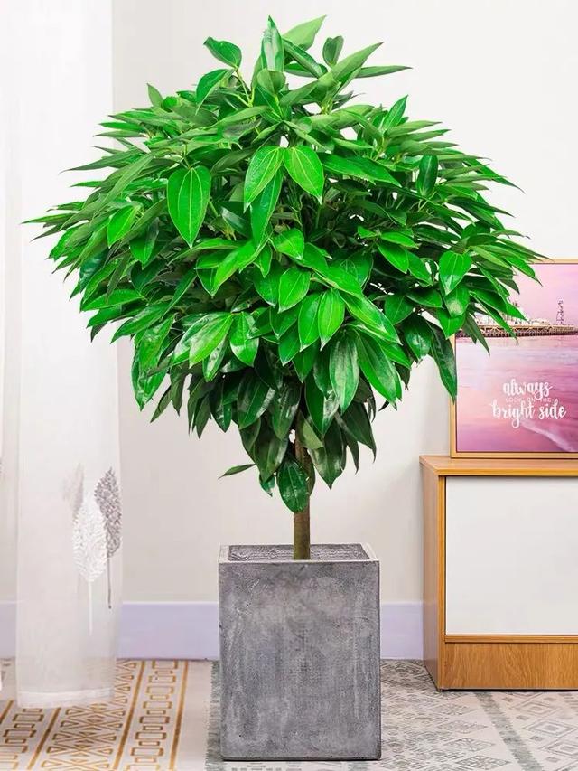 幸福树也是非常受人欢迎的一种中等的乔木,它的枝干非常的粗壮,但是它的叶片非常繁茂,它的叶片上凹凸有致,上面有一些凸起的小泡泡,整个株型非常的圆润饱满,看起来特别有南国的风情。在客厅中养护非常合适,它喜欢光照,但是又非常耐阴,可以放在半阴的地方养护,在家里养棵幸福树,寓意着幸福美满、阖家欢乐。