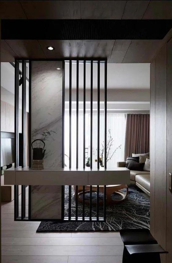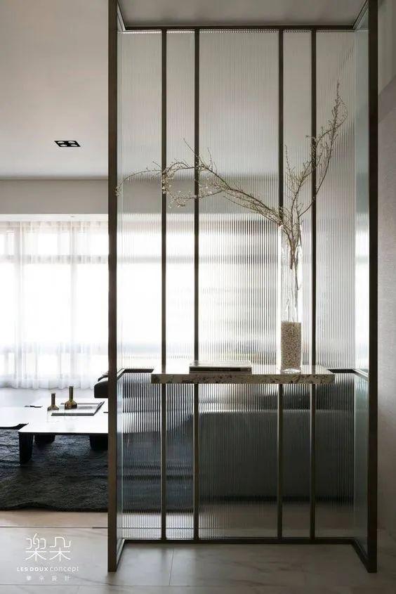 中式大宅院通常都会设置玄关,而现代都市住宅普遍来讲面积狭窄,如果再设置玄关,当然会让人感到局促。折中的办法是用玻璃屏风来做间隔。当然,不要为了设置玄关而做,一定要符合整体的设计逻辑。