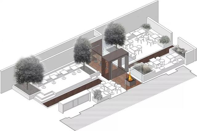 八荒设计还设计了CHARCOHOL的室外花园,作为“温度轴”的延伸,延续“灰”后室的材质。花园的中心是一个烧烤私宴功能的玻璃耐候钢板的阳光房。阳光房的花园里种有各种烹饪用的香草及花果,人们可以在这里享受阳光、咖啡,和休闲炭烤等美味。