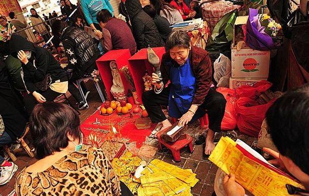 她说曾接待过一位男客户。这人常年跑生意,惹上官司,来之前已经在香港算了一整天的命了,遇到的所有算命的都说他官司肯定输。后来到了这位神婆摊位前,啥也没说,坐下就嚎啕大哭。神婆除了给他做“打小人”的仪式,更多的是耐心地听他讲那些或许他从来也不会对家人说的生意场上的委屈。后来,客户打赢了官司,途径香港时还买了不少水果点心,专程来看这位神婆。