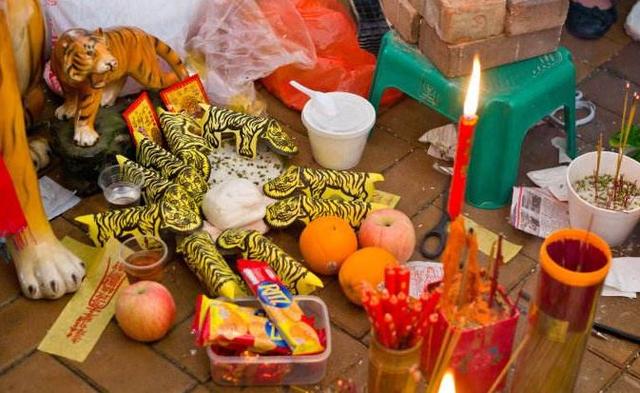 “打小人”时,白虎必须拿肉来“收买”,认为这样之后白虎就只咬小人不咬好人了。