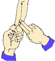 2、引水上天河:蘸水,从掌心推至肘弯;