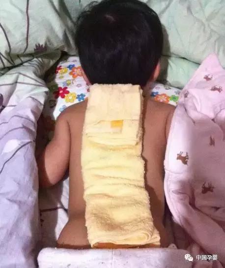 揉完捋完后用沾上肥皂的热毛巾覆盖住整条脊柱,温了再换热的。热毛巾敷背脊可以协助孩子把热发透。