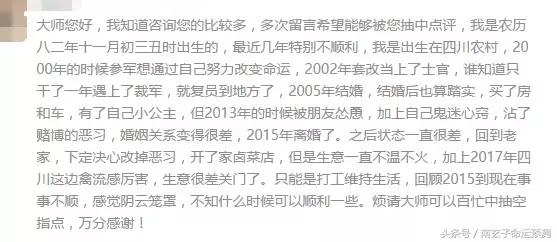 如需咨询命理运气,可以留言你的年月日时、问题。来信将被抽取点评,并作为公开资料。
