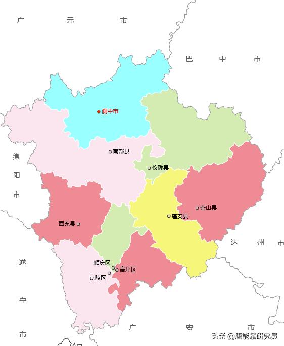 阆中位于川东北区域,南充的最北端,紧邻广元,也与巴中接壤。