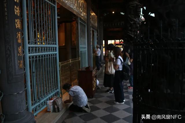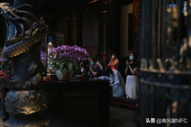 人们虔心跪拜、掷筊、求签,掷筊正反一次得签,再连续掷筊三次正反才能确认是此签,有人求而不中,有人已在解签。还有人坐在殿旁,拿着串珠,摇首摆手,口中默念。