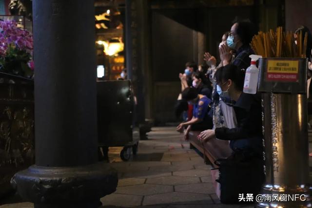 这天是6月5日的傍晚,艋钾龙山寺早就聚满了信众,观世音菩萨像在傍晚的霞光下佛光闪闪,其他各路仙人如月下老人、文昌帝君殿前也有人排队祈愿。