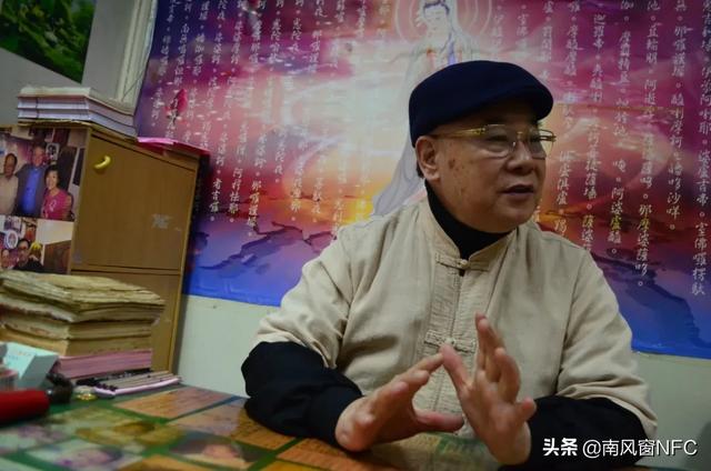 廖和村戴着眼镜,头戴一顶紫帽,身穿白色褂装,笑眯眯的很接“地气”。