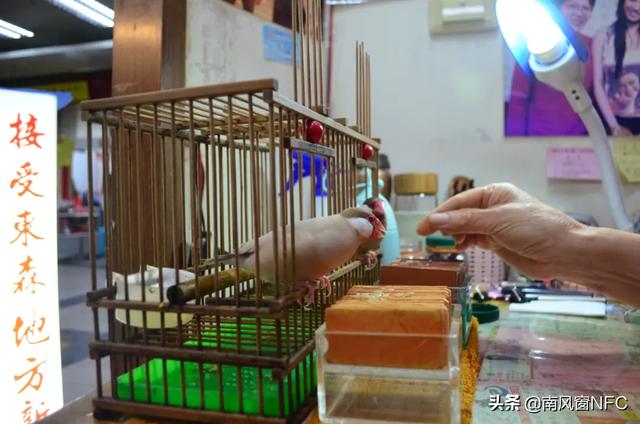 聊着聊着,他把写有我八字的红纸交给太太,让文鸟为我的感情卜上一卦。“好不好,鸟卦比我准。”