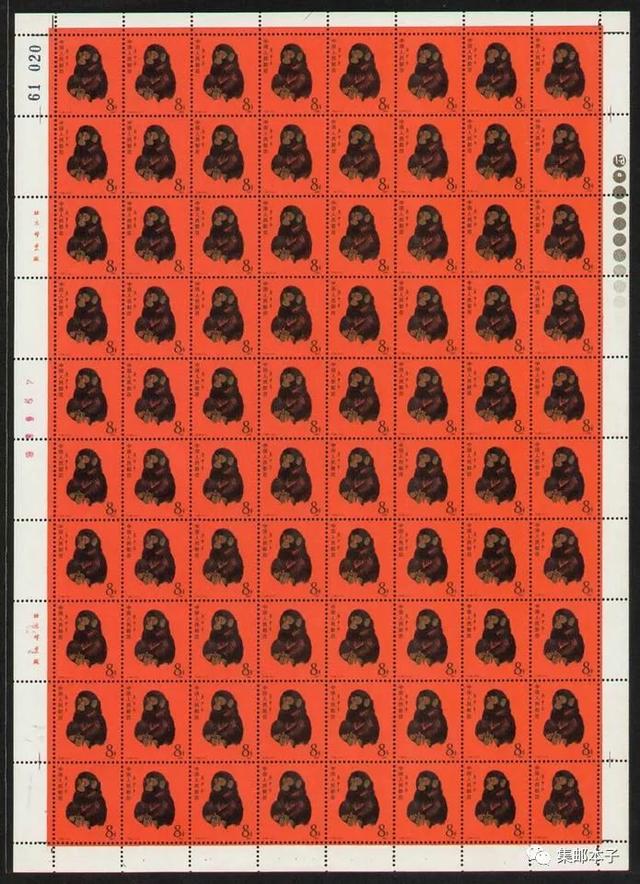 ll6208:84年还是初中生时开始集邮,每月只有几元钱可以买邮票,那时猴票卖8元钱,始终觉得不值那么多钱,一直没有买,后来读高中忙于学习邮票都交给了父亲,父亲只是预订了新邮,从此再没有机会接触到猴票了。直到去年,我偶然从集邮网站发现猴票已涨到2000元一枚,再次联想到少年时回忆,决定一定要拥有一版猴。开始始终找不到购买的渠道,于是从上海某网站先购买了一个带下边的方连,价格是8500元。过了一个月,用17.7万元终于购买了一版猴,圆了心愿。