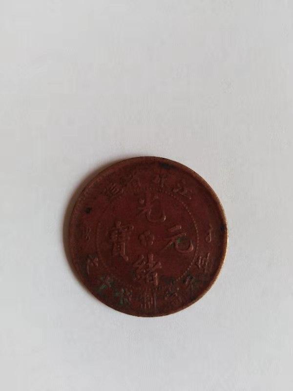 此藏品为江南省造光绪元宝当十铜元,此铜币整体品相完好,包浆自然,塑造工艺精湛。钱面:珠圈内汉文“光绪元宝”,圈外上环江南省造,左右地支干年,下环币值”,钱背:中心为蟠龙图。品相精致,不失为一件珍品。