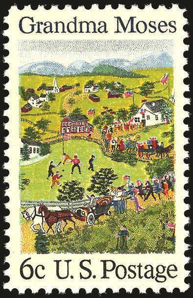美国邮政1969年发行的摩西奶奶《国庆日》纪念邮票,原作现为白宫所有