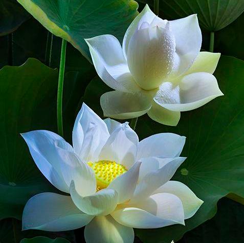 莲花有五色:白、青、红、紫、黄,称为“五种天华”。其中白、青两色最受青睐。白莲花,梵文音译为芬陀利。此花生长于佛国,人世间难以见到,故又称“希有之华”。青莲花,梵文音译为优钵罗。叶狭长,近下小圆,向上渐尖,青白分明,酷似佛眼,故在佛经中称之为“莲眼”,也即观音菩萨的眼睛。