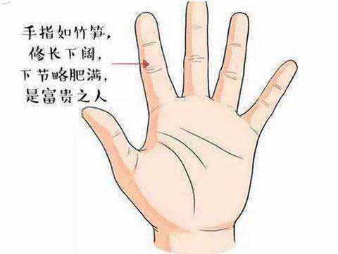 手指如竹笋的人命好手指头挺直,有肉不露骨,好似竹笋,整体修长,指节有肉而圆润的人一般财运好,种手相的人可能是出身名门,从小富贵双全,长大之后能够得到长辈的庇护,无论从事什么工作,都能够得到贵人相助,一生富贵双全。