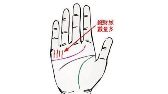 女人手相有钱财纹在无名指和小指有细细的斜线被称为钱财纹,女人手相有这种纹路的人,一般财运比较好,大财小财不断,其中工作奖金、意外小奖、分红等等都属于这类的财富。这种手相的女人如果想要有更好的财运,可以佩戴一叶