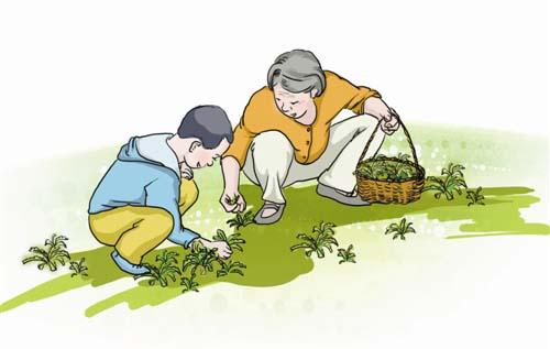 “哎,你咋把荠菜和婆婆丁放在一块了!”“嗨,我刚才怎么教的你,光记着吃了,一转眼就忘了”“哎,那是白毫,刚才不是说了吗,叶背上有白毛的不是荠菜”“记住,一颗荠菜的叶子有嫩绿色,有的还带有紫色,叶边有小刺,叶齿顺生的,拔的时候顺手;婆婆丁又叫蒲公英,叶片也是嫩绿色,但不会有紫色的,叶边缘带有尖齿,边缘的缺口很深,叶上没有小刺,叶齿逆生,拔的时候有逆手感。都记住了吗?……”母亲洪亮的声音在田野里一次次响起,因为每一次我和爱人都会给她老人家一个“惊喜”——又挖错了!