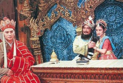 其实还有一个场景,就是公主抛绣球招到唐僧后,黄门官提前把这个消息告诉了国王,说是公主搀着一个和尚来了,正在午门外候旨呢。