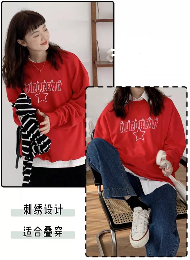 番茄红可以说是最抢镜的颜色,热情又个性。大家都知道涂口红能显白,所以红色运用到卫衣上的显白功力也一绝。