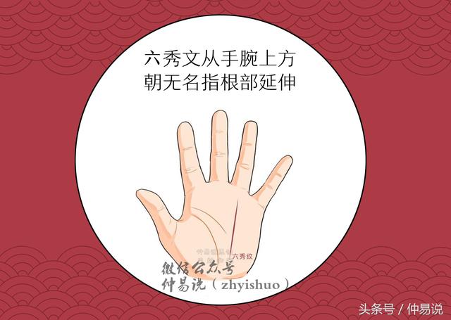 手上有六秀纹从手腕上方开始朝无名指的根部延伸,并且纹路清晰秀长的女人,一般个性爽朗,异性缘好。