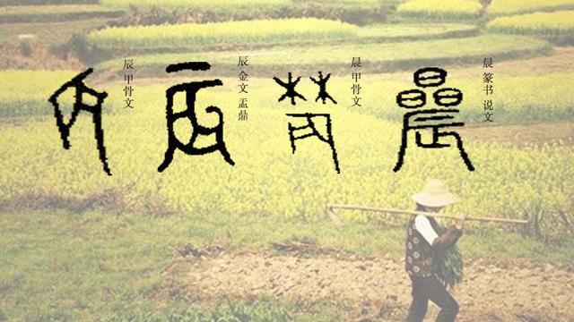 “晨”的字源主要来自“䢅”和“曟”两字,“䢅”是会意兼形声字,即以双手持“辰”一样的农具开始劳作表示“早晨”之义;“曟”是形声字,上部的“晶”是“星”的本字,表示时间很早,还可以看见星星。