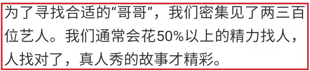 正如吴梦知所说的那样,“人找对了,真人秀的故事才精彩”。那么吴梦知团队是怎么给《哥哥》这档节目选嘉宾的呢?