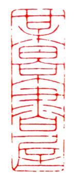 引首章,钤盖在书法作品的右上方,不要顶格压字,也不要距离太远,形制往往用不规则椭圆或竖长方形,一般不宜为方形。书法作品上是否盖引首章要看情况,如款首过于整齐,需破形,款尾印章分量太重,作品上印章分布单调,需调整,此时应考虑引首章。