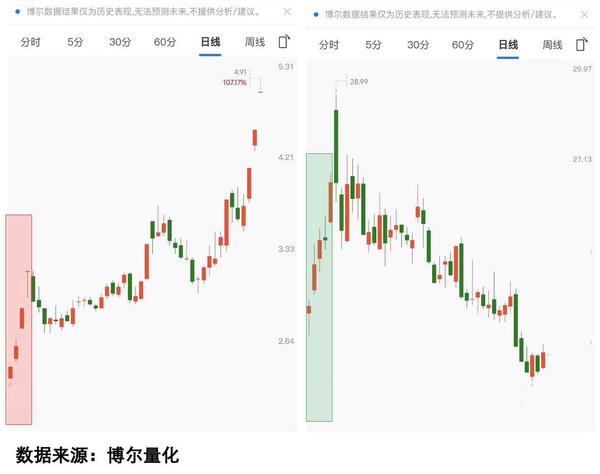 这是用我用的大数据系统看到的两只股票的「交易行为」数据