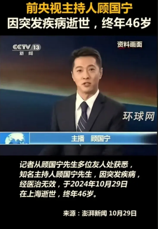 短短的六年,顾国宁一家三口都先后离开。顾国宁的丧事是在南京举办的,自从从央视离开以后,他就去了南京艺术学院当硕士生导师。